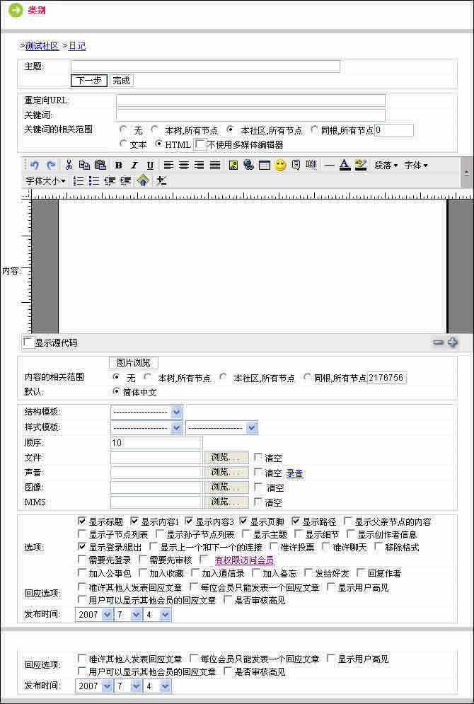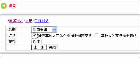 管理員可以在這里做出限制,準許別人在類別中創(chuàng)建節(jié)點,還是需要管理員確認才可以在此顯示別人的節(jié)點。