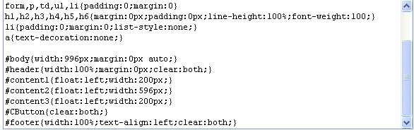 我在總的CSS內(nèi)定義了#body寬996,標(biāo)題、頁(yè)腳100%寬,內(nèi)容1、內(nèi)容2、內(nèi)容3分別為200、596和200都浮動(dòng)居左,如下圖: