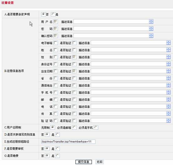 例如:某些網(wǎng)站的收費會員也是企業(yè)會員,他們除了填寫一些基本的注冊信息外,還需要填寫一份他們自己企業(yè)的注冊信息,這是我們在設(shè)定這類會員注冊信息的時候,在是否關(guān)聯(lián)填寫類別信息后邊選擇是,要關(guān)聯(lián)一個公司的注冊信息表單。