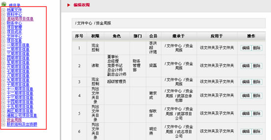 但是我們所看的功能操作并不是所有人員都有,部門、角色等條件都起到了區(qū)分權(quán)限的作用,具體請(qǐng)參考“文件權(quán)限管理”。