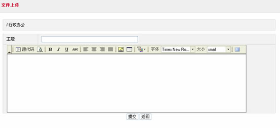 “新建/上傳”文件,填寫文件的主題、該文件的內(nèi)容和瀏覽上傳多個文件;如圖:文件內(nèi)容可以進行多媒體編輯,此功能和Word一樣使用方便。