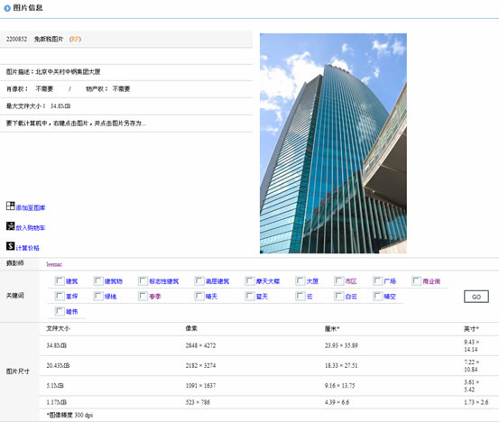 1、 圖片信息:點(diǎn)擊進(jìn)入圖片詳細(xì)信息頁面如上圖所示