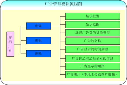 廣告管理模塊可以控制廣告的顯示時(shí)間、顯示位置、顯示范圍;可以自定義廣告的風(fēng)格,選擇繳納廣告費(fèi)所用的貨幣,支持美元、人民幣、港幣等多種貨幣類型;自定義廣告每千次顯示的價(jià)格;能夠指定點(diǎn)擊廣告后轉(zhuǎn)到的鏈接;能夠自動(dòng)默認(rèn)排序,或按客戶需求排序,方便靈活;能從本地上傳廣告圖片、或指定圖片的鏈接,選擇方式靈活;可以對(duì)廣告信息隨時(shí)進(jìn)行編輯、修改和刪除操作,簡單實(shí)用;