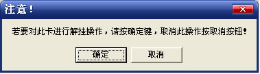 點擊“確定”按鈕即可將此卡解掛,恢復(fù)正常使用,點擊“取消”按鈕則取消本次操作,操作完畢后點擊“返回”按鈕退出。