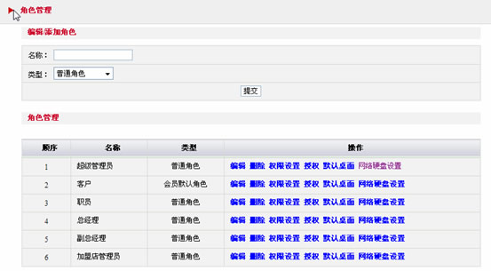 點擊權(quán)限設(shè)置可以對每個角色可以管理的菜單進(jìn)行編輯