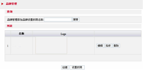 上圖是添加商品的品牌包括對品牌名稱的搜索顯示,對品牌的修改,品牌價格的批量修改,刪除,創(chuàng)建一個品牌以及對這個品牌設(shè)置用戶的管理權(quán)限。