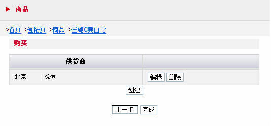 這個頁面是添加商品的供貨商列表的頁面,點擊下面的創(chuàng)建,即使創(chuàng)建一個商品的供貨商信息,如下圖: