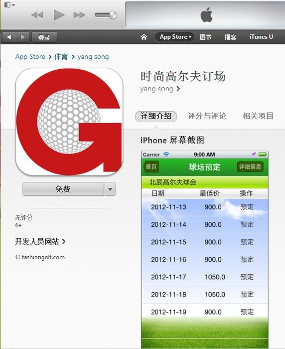 高爾夫訂場(chǎng)手機(jī)客戶端,在iTunes Stonre成功上線