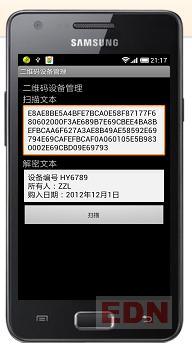 用加了解密程序的掃描終端可以識(shí)別到具體內(nèi)容: