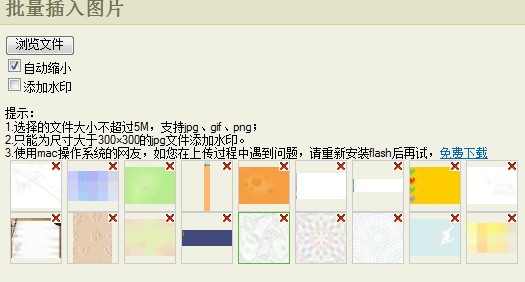 如果上面選擇了加水印功能,則會(huì)在每張小圖上加入水印,當(dāng)然在站點(diǎn)管理中應(yīng)事先設(shè)置了好水印;