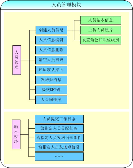 通過用戶信息的創(chuàng)建與管理,并與角色管理和部門管理配合使用形成一個分部門的用戶管理體系,如用戶可以提交工作日志,該部門的相關(guān)領(lǐng)導(dǎo)可以查閱部門中的員工工作日志;在我的任務(wù)中可以通過添加用戶來發(fā)送新建的任務(wù);管理員可以指定的用戶來發(fā)送內(nèi)部郵件;可以在全體人員列表中選擇某個用戶來發(fā)送內(nèi)部郵件和短信息。