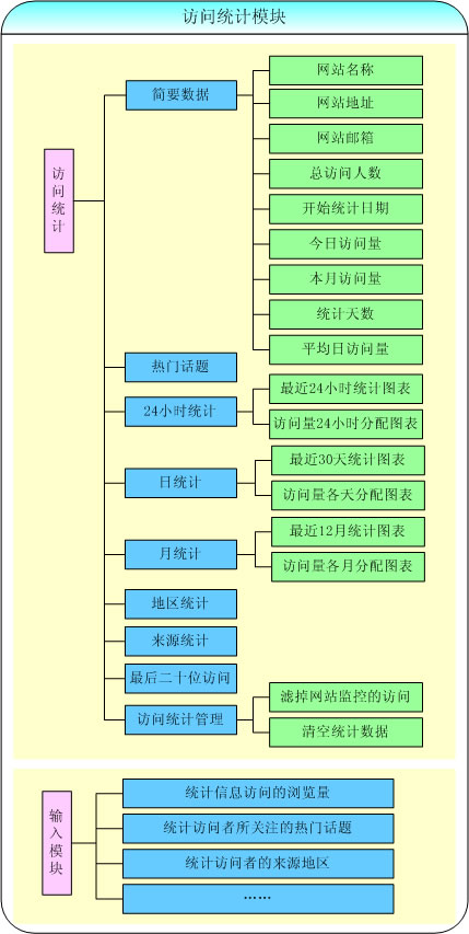 訪問統(tǒng)計(jì)模塊由簡要數(shù)據(jù)、熱門話題、24小時(shí)統(tǒng)計(jì)、日統(tǒng)計(jì)、月統(tǒng)計(jì)、地區(qū)統(tǒng)計(jì)、來源統(tǒng)計(jì)、最后二十位訪問、訪問統(tǒng)計(jì)管理等欄目組成。下面對(duì)這些功能逐一進(jìn)行介紹: