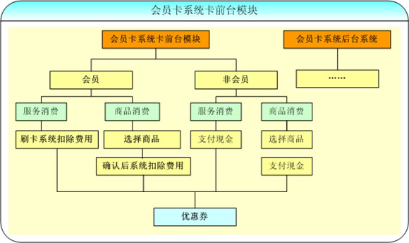 會(huì)員卡系統(tǒng)中的卡前臺(tái)操作模塊主要是針對(duì)用戶的刷卡消費(fèi)進(jìn)行的直接操作,根據(jù)卡類型的不同又分為會(huì)員服務(wù)類消費(fèi)和購(gòu)買商品消費(fèi)兩種操作,是會(huì)員卡管理系統(tǒng)中一個(gè)重要的組成部分。